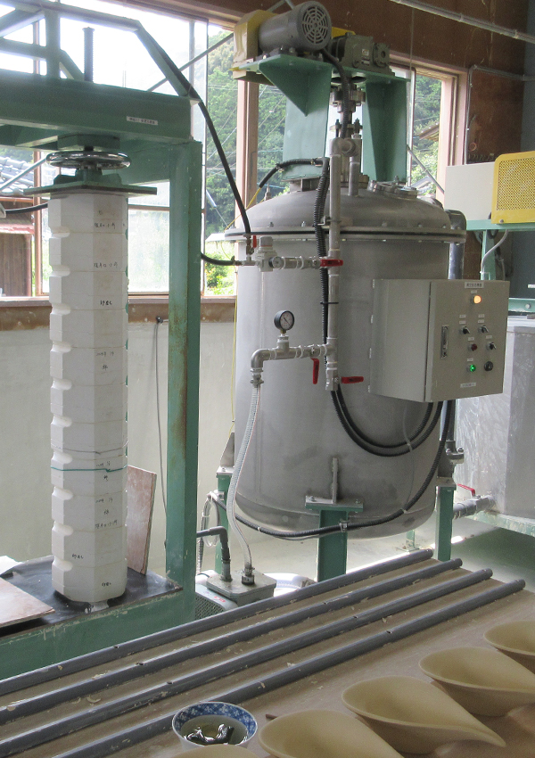 圧力鋳込み成型機 2025 9/25 有田町生地製造会社様よりのご依頼で圧力鋳込み成型機(200リットル)を制作させていただきました。 石膏型締機などフレーム等一式 真空脱泡機 泥漿撹拌機 真空脱泡機 泥漿撹拌機 石膏型締機 WORKS ドライ・コーティング・ブース(乾式塗装ブース)